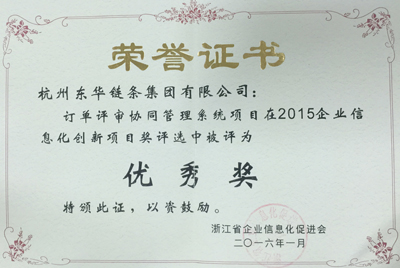 東華自創(chuàng)建以來,一直高度重視企業(yè)信息化建設工作,取得良好成效。日前,訂單評審協(xié)同管理系統(tǒng)被浙江省企業(yè)信息化促進會授予“2015企業(yè)信息化創(chuàng)新項目優(yōu)秀獎”稱號。