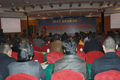 宣碧華董事長首先致辭。他說,我首先代表東華集團,對大家在百忙之中來參加東華的用戶座談會表示熱烈歡迎,也對大家一年來對東華的大力支持表示衷心感謝。過去的一年是比較困惑的一年,國內經濟形勢不太好,沒有高速增長反而有滑坡的跡象,特別是國際市場很明顯,金融方面,歐洲的主權債務方面的危機影響工業的發展,使很多訂單出現下降。從鏈條行業來看,很多企業外銷訂單明顯下降,基本下降30%以上,在這樣的形勢下,我們如何判斷一個企業是否健康?我從五方面判斷,一是訂單下降,客戶是否流失?如果我們的訂單下降,客戶沒有流失,這是暫時的,如果訂單下降,客戶流失,這是危險的;二是企業訂單下降與整個行業相比較的情況如何?東華外銷訂單下降與同行是同步的,說明這是國際發展趨勢,如果訂單下降比同行多,說明企業是有問題的;三是企業現金流是否斷層?有些企業投入一些高危行業,帶來現金流緊張,也是危險的。四是企業的員工隊伍是否穩定,骨干是否流失?如果說員工和骨干穩定,企業也是健康的;五是經營團隊是否健康?從老板到整個經營團隊,碰到目前形勢不好,是否能理性、沉著應對。這五方面如果判斷下來沒有問題,說明企業還是健康的。東華訂單與2011年持平,內銷有所增長,客戶沒有流失反而增加,所以說是健康的。現金流比較富裕,整個2012年,包括技改投入、對外投資、基建投入、經營用款收支平衡,現金流健康。整個員工隊伍穩定,員工收入增加,同時,整個決策層看好形勢,對東華未來的發展充滿信心。