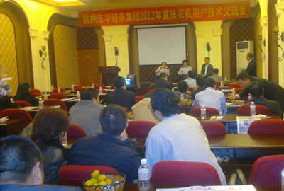 10月19日,重慶杭東鏈條銷售有限公司在重慶怡然大酒店舉行第二屆農(nóng)機(jī)鏈條配套產(chǎn)品技術(shù)交流會。參會30多家企業(yè)主要來自重慶地區(qū)。東華總部特派傳動(dòng)鏈?zhǔn)聵I(yè)部副部長李奎林、輸送鏈?zhǔn)聵I(yè)部高級工程師閔乃忠參會。