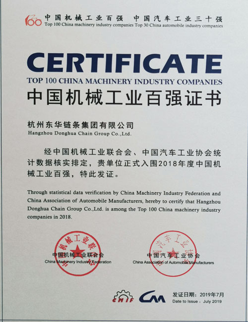 近日,中國(guó)機(jī)械工業(yè)聯(lián)合會(huì)、中國(guó)汽車工業(yè)協(xié)會(huì)聯(lián)合發(fā)布了2018年中國(guó)機(jī)械工業(yè)百?gòu)?qiáng)、汽車工業(yè)三十強(qiáng)企業(yè)名單。我公司連續(xù)四年躋身中國(guó)機(jī)械工業(yè)百?gòu)?qiáng)榜,排名第59位,也是中國(guó)鏈傳動(dòng)行業(yè)唯一上榜企業(yè)。
