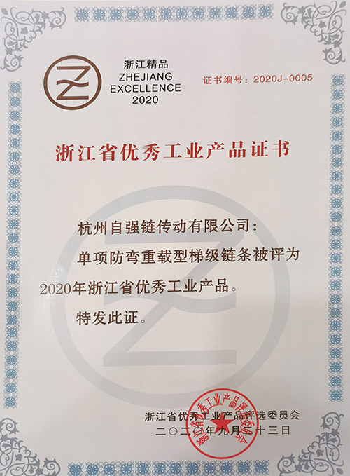 單項防彎重載型梯級鏈條已獲得發(fā)明專利2項,實用新型專利6項,填補國內(nèi)行業(yè)空白,成功實現(xiàn)了國產(chǎn)化。已通過浙江省省級工業(yè)新產(chǎn)品(新技術(shù))鑒定驗收。單項防彎重載型梯級鏈條是自動扶梯的關(guān)鍵部件,用于地鐵、火車站等公共環(huán)境中。從產(chǎn)品圖紙和工藝策劃開始就考慮生產(chǎn)過程中如何實現(xiàn)節(jié)能降耗。成功應(yīng)用在土耳其地鐵項目和京張高鐵八達(dá)嶺長城站42米自動扶梯上。