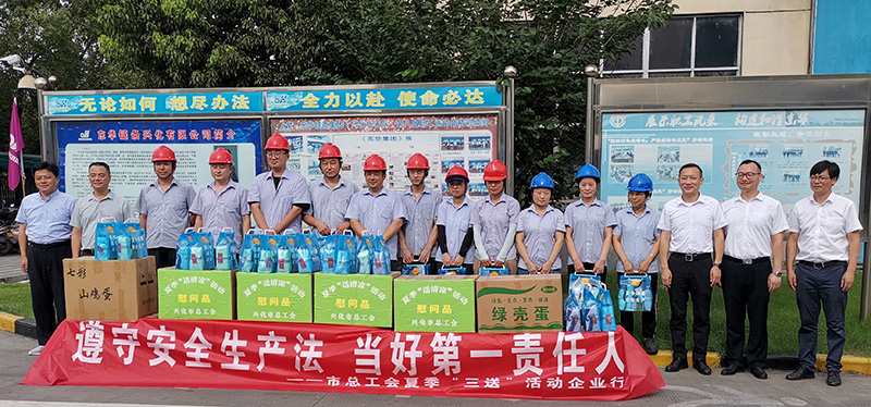 最后,來訪領(lǐng)導(dǎo)向一線員工開展“送安全、送法律、送清涼”關(guān)愛活動,把200份防暑物資送到員工手中,并祝大家身體健康,工作取得更好的成績。