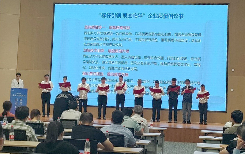 9月16日,臨平區(qū)質(zhì)量強(qiáng)區(qū)領(lǐng)導(dǎo)小組辦公室組織召開“標(biāo)桿引領(lǐng),質(zhì)變臨平”質(zhì)量月專題活動(dòng)。東華作為區(qū)政府質(zhì)量獎(jiǎng)企業(yè)應(yīng)邀參加“臨平質(zhì)量故事”分享,副總經(jīng)理廖杭州上臺(tái)宣讀了“標(biāo)桿引領(lǐng),質(zhì)量臨平”企業(yè)質(zhì)量倡議書。