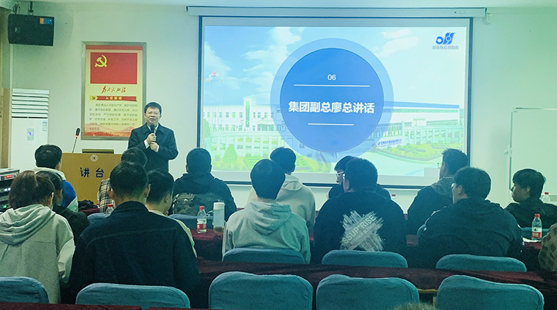 最后,集團(tuán)副總經(jīng)理廖杭州講話。首先肯定了大學(xué)生們?nèi)找孢m應(yīng)和進(jìn)步的表現(xiàn);其次要做好平凡的工作,在怎么干上創(chuàng)新;最后要學(xué)會(huì)堅(jiān)守,提高效率與競(jìng)爭(zhēng)力,在企業(yè)平臺(tái)和崗位賽道上實(shí)現(xiàn)個(gè)人價(jià)值和企業(yè)目標(biāo)。