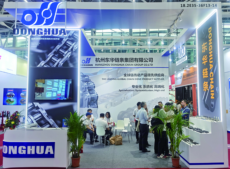 東華鏈條展廳位于展館的D區(qū),由國際市場部、盾牌公司等聯(lián)合參展,展品有各種高端滾子鏈、輸送鏈等150余件。展會期間不斷有世界各地的新客戶來到展廳參觀詢問,近至亞洲,遠(yuǎn)至南美和歐洲,他們詢問了解公司信息,交換名片和遞送公司宣傳冊,也有合作多年的老客戶、老朋友到東華展廳參觀交流。參展團(tuán)隊(duì)向客人介紹企業(yè)的發(fā)展情況以及新產(chǎn)品、新技術(shù)等信息,雙方積極尋求新的合作方向。