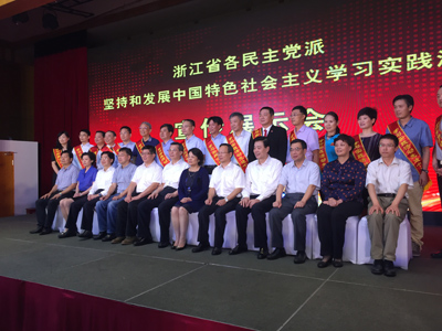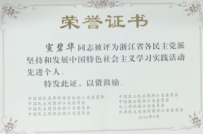 日前,浙江省各民主黨派堅持和發展中國特色社會主義學習實踐活動宣傳展示會在杭州召開。會議共表彰了22位浙江省各民主黨派堅持和發展中國特色社會主義學習實踐活動先進個人,我集團董事長宣碧華榮獲“浙江省民主黨派學習實踐活動先進個人”稱號,成為浙江省民建3位先進個人受到表彰。