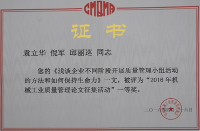 本次會議由中國機械工業(yè)質(zhì)量管理協(xié)會組織,全國上百家企業(yè)的200多人參加會議。會上邀請國家工信部領(lǐng)導(dǎo)與行業(yè)專家解析了《國家“十三五”規(guī)劃》內(nèi)容和路線圖,介紹了《制造業(yè)質(zhì)量和品牌提升三年行動計劃(2016-2018年)》。各行業(yè)質(zhì)量負責(zé)人交流了行業(yè)質(zhì)量管理經(jīng)驗和企業(yè)落實機械工業(yè)“十三五”質(zhì)量規(guī)劃行動舉措、方法,同時對全國機械工業(yè)質(zhì)量管理優(yōu)勝論文進行了評選和表彰。東華集團的《淺談企業(yè)不同階段開展質(zhì)量管理小組活動的方法和如何保持生命力》及《以質(zhì)量為核心,化“危”為“機”,創(chuàng)建國際知名品牌》兩篇論文分別獲得一等獎和優(yōu)秀獎。