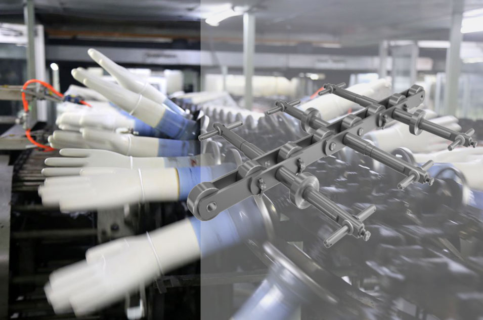 ● 橡膠手套鏈已經(jīng)形成系列化產(chǎn)品,通過特殊設(shè)計(jì),滿足橡膠手套生產(chǎn)線更長、更快、優(yōu)質(zhì)高效的制造需求。